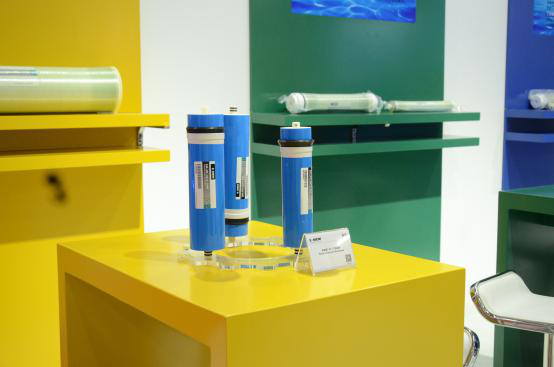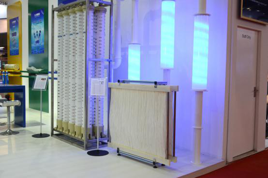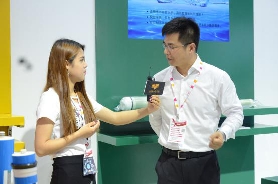展會現場,天創環境董事長丁國良在展位現場接受了中國脫鹽的采訪并悉心介紹了此次展出的產品,其中一款是TXP浸沒式超濾膜,另一款是工業節能膜(EF)系列。TXP浸沒式超濾膜,是我們與陶氏化學(DOW)合作研發的一款市政領域新產品,該產品采用最新研發的超高性能XP膜絲技術,具有極高的滲透性、抗污染能力強、低能耗、低運行成本、制水效率高等性能特點,實現了中國自來水水質提標領域解決方案的新突破。目前,這款產品已經在兩個十萬噸以上的自來水廠中投入了實踐應用。