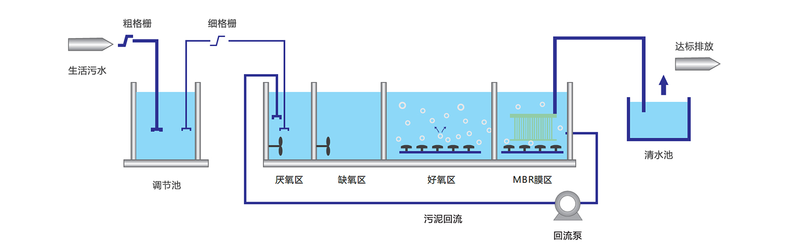 工藝類型:AAO生化處理+MBR膜處理系統