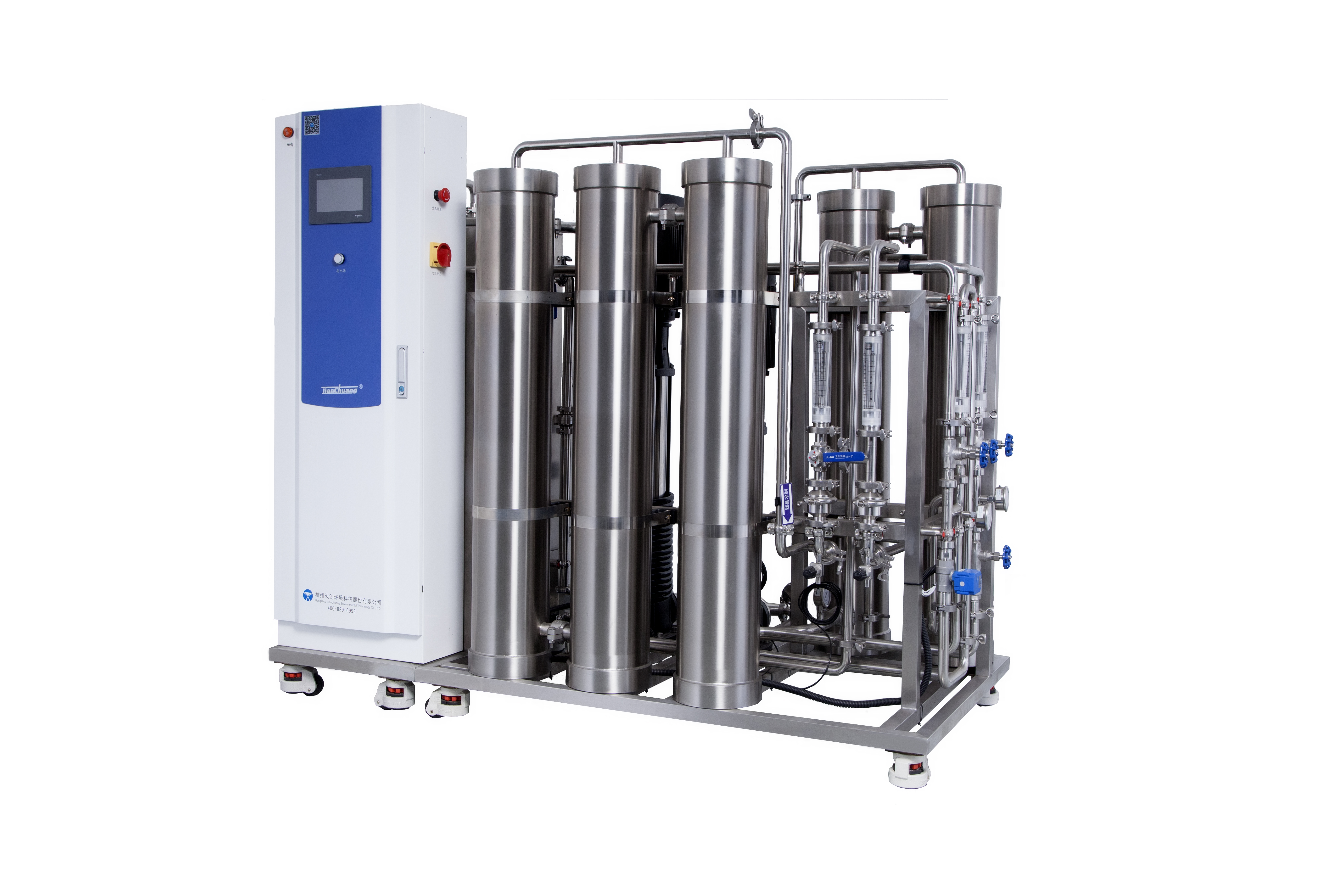 4、反滲透膜自動清洗、反滲透主機管路無死角設計等工藝,